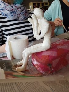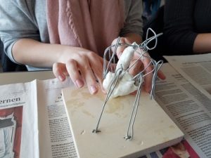 Doch was tun, wenn man zu viel Toilettenpapier gehamstert hat? Die Klasse 9a hat eine ebenso nützliche wie witzige Verwendung für das softe Material gefunden. Sie gestaltet im Rahmen ihres Kunstunterrichts Figuren aus Draht, Toilettenpapier und Kleister.