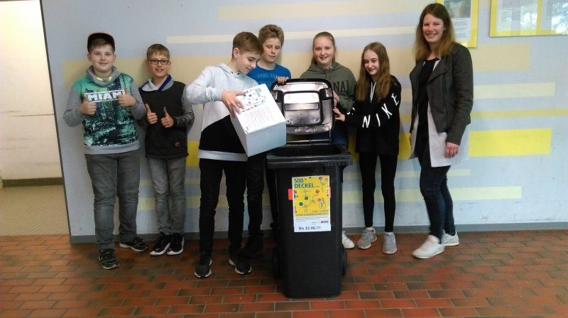 Wir, die Klasse 6a, möchten das Projekt „Deckel drauf – Deckel gegen Polio“ unterstützen und haben in allen Klassen der AS einen Karton verteilt. Wenn man 500 Deckel von Getränkeflaschen und -kartons sammelt, kann ein Kind gegen Kinderlähmung geimpft werden. Die Deckel werden an einen Wertstoffhof verkauft und mit dem Erlös werden weltweit Impfaktionen gegen Kinderlähmung unterstützt.  Helft anderen Kindern, indem ihr Deckel sammelt. In der Aula der Außenstelle steht eine Mülltonne, wo ihr Deckel reinwerfen könnt. Frau Thal von der Abfallwirtschaft Landkreis Rotenburg hat uns die Mülltonne vorbeigebracht.  Jeder kann mitmachen und die Deckel in der AS abgeben. DAS PROJEKT GEHT NUR NOCH BIS ZUM 30.6.2019. WIR SAMMELN IN DER SCHULE BIS ZUM 22.6. und bringen die Deckel zur Abgabestelle.  Also beeilt euch, wenn ihr anderen Kindern das Leben retten wollt. Weitere Infos gibt es auf der Homepage von Deckel drauf e.V..