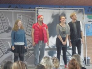 Auch in diesem Jahr konnten wir die Theaterpädagogische Werkstatt Osnabrück für unseren 8. Jahrgang buchen. Am Donnerstag, den 21.06.2018, führten vier SchauspielerInnen das Stück „EinTritt ins Glück“ in der Pausenhalle des Hauptgebäudes der Oste-Hamme-Schule auf. 60 Minuten dauerte das Theaterstück. Danach ging es in die Klassen zum Workshop zu den Themen: Das erst Mal, Sexualität, Liebe, Anerkennung in der Clique, Freundschaft, Zärtlichkeit, sexuelle Grenzverletzungen und wo kann ich mir Hilfe holen? Unter Anleitung jeweils eines Theaterpädagogen konnten sich die Jugendlichen in ihrer Klasse mit diesen Themen auseinandersetzen.