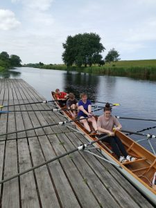 Für die Schüler:innen der 7a stand die letzte Schulwoche vor den Sommerferien ganz unter dem Motto „Wassersport“. Neben dem Freibad-Besuch am Donnerstag war auch der Dienstag geprägt von Sport im bzw. auf dem Wasser. Als Schuljahres-Abschluss hatte die Klasse sich etwas ganz Besonderes überlegt – sie wollte sich einmal das Hobby ihrer Klassenlehrkraft zeigen lassen – das Rudern. So ging es mit Elterntaxis in das rund eine Stunde entfernte Otterndorf.
