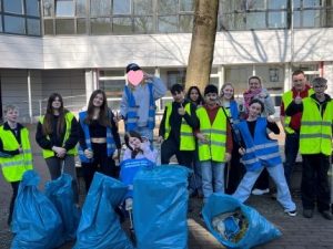 Im Rahmen des Gnarrenburger Dorfputzes beschloss die Klasse 8b den Ortsrat zu unterstützen und sammelte Müll auf dem Gebiet der beiden Schulgebäude. Mit Warnwesten und Greifzangen ausgestattet, säuberte die Klasse die Bereiche, die am meisten von den Schülerinnen und Schülern der Oste-Hamme-Schule genutzt werden. Es ist Einiges zusammengekommen. Die Gruppe mit dem bestgefüllten Müllsack wurde von Frau Grube mit einem süßen Preis ausgezeichnet. Besonders ärgerten sich die engagierten Schüler:innen über die Zigarettenreste, die überall zu finden waren. Beim nächsten Dorfputz möchte Frau Grube noch mehr Klassen motivieren und den Ortsrat regelmäßig unterstützen. Eine saubere Gemeinde ist eine Gemeinde, in der man gerne wohnt, und dazu möchte die Schule sehr gerne beitragen. „Ich bin stolz auf die 8b, die einen guten Job gemacht hat und dabei auch noch Spaß hatte“, sagte Frau Grube. So viel Einsatz ist nicht mehr selbstverständlich.
