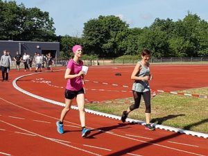Mehrere Mitglieder des Lehrerkollegiums liefen auch selbst um die Gunst der Sponsoren. Schulleiterin Astrid Junge und Konrektorin Saskia Zarnikow gingen mit gutem Beispiel voran und drehten unter Anfeuerungsrufen der Schüler ihre Runden auf der Kunststoffbahn. Ebenfalls als Läufer am Start waren Herr Schrader, Herr Günnemann, Frau Schröder und Frau Heitsch. Auf welche Art und Weise die erlaufenen Gelder eingesetzt werden sollen, darüber wird die SV noch beraten.  Der Erlös soll zu 100 Prozent der Schulverschönerung zugute kommen.